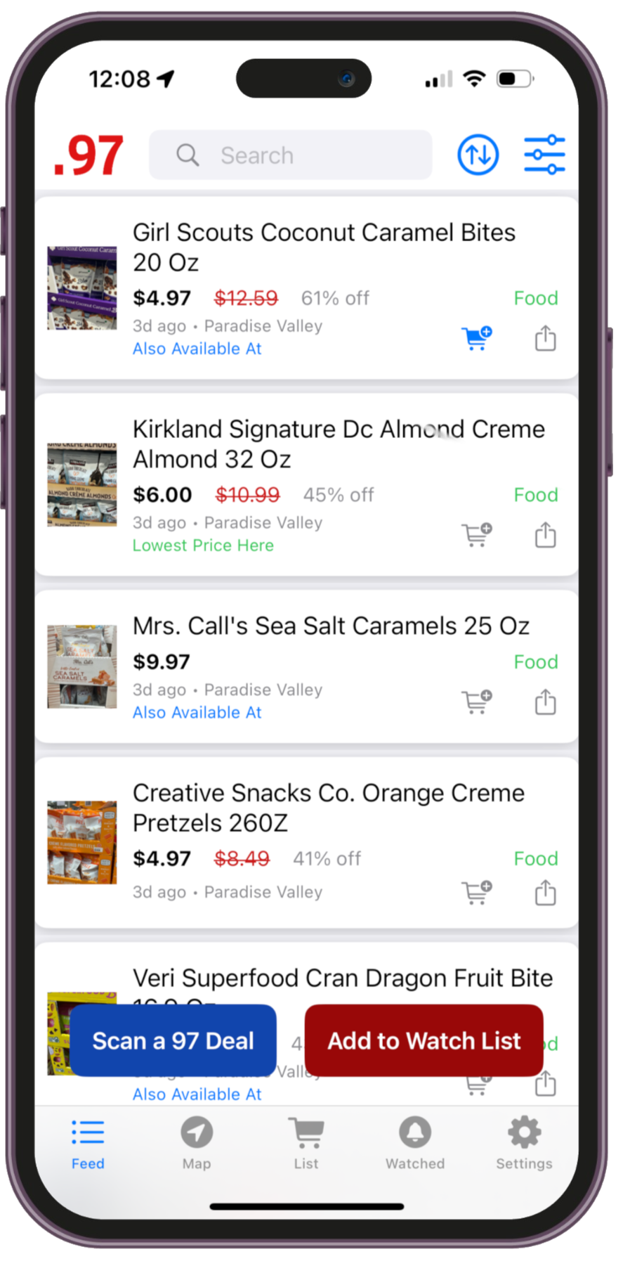 Use the app to scan a price tag, CostLow reads the tag and decodes item number, description, and price. Simply place the price tag in the box. Wait until it turns green.